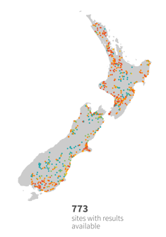 Not all rivers across New Zealand are monitored, and monitored sites are often in areas more at risk from human activities. This means the summary results are not necessarily a balanced representation of all rivers and streams across the country. That said, we can learn a lot from the monitoring histories of the 1700 river and stream sites that are regularly sampled.
